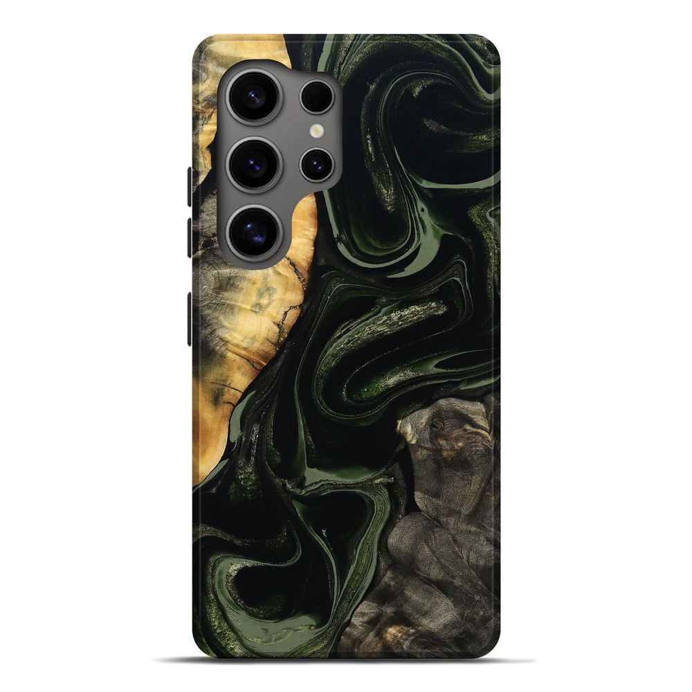 Our Live Edge cases are made from an amazing combination of stabilized wood burl and colored resin. Our stabilization process hardens the wood to protect against cracks and breaks. We do every step of the process at our shop in Northern Indiana. Perfectly fits the Galaxy S25 Ultra.