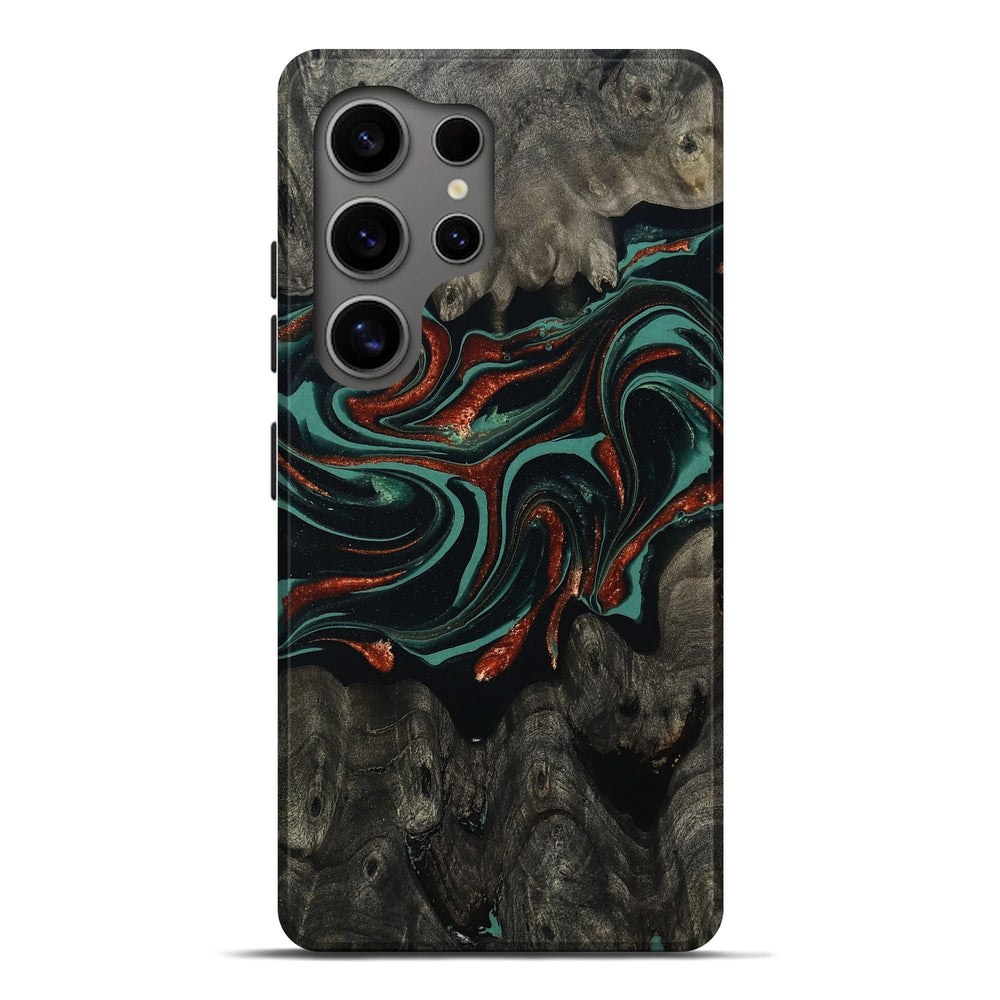 Our Live Edge cases are made from an amazing combination of stabilized wood burl and colored resin. Our stabilization process hardens the wood to protect against cracks and breaks. We do every step of the process at our shop in Northern Indiana. Perfectly fits the Galaxy S25 Ultra.