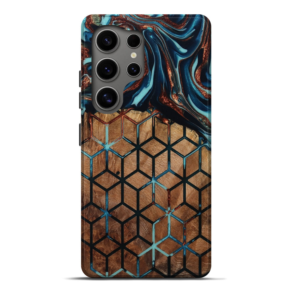 Our Live Edge cases are made from an amazing combination of stabilized wood burl and colored resin. Our stabilization process hardens the wood to protect against cracks and breaks. We do every step of the process at our shop in Northern Indiana. Perfectly fits the Galaxy S25 Ultra.