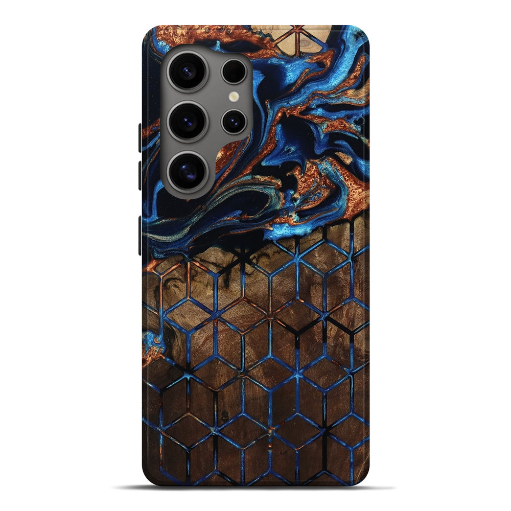 Our Live Edge cases are made from an amazing combination of stabilized wood burl and colored resin. Our stabilization process hardens the wood to protect against cracks and breaks. We do every step of the process at our shop in Northern Indiana. Perfectly fits the Galaxy S25 Ultra.