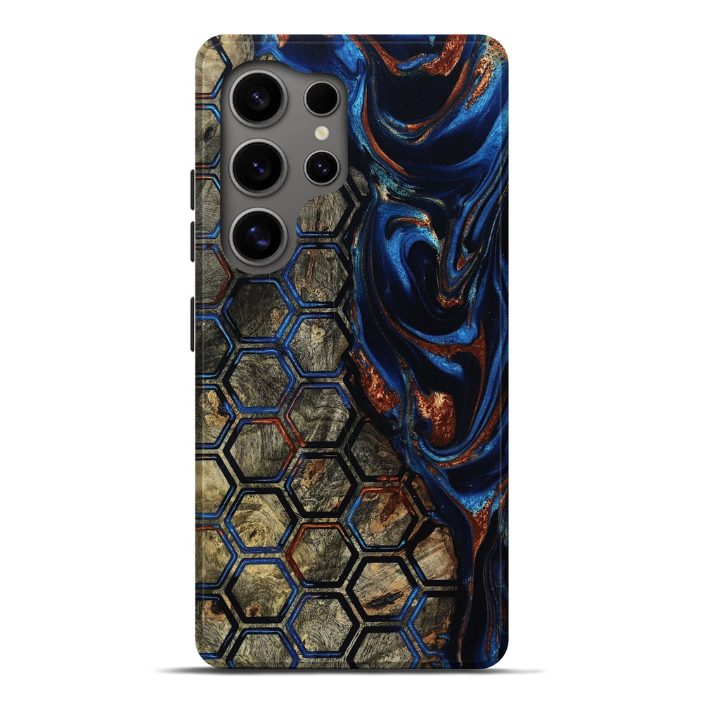 Our Live Edge cases are made from an amazing combination of stabilized wood burl and colored resin. Our stabilization process hardens the wood to protect against cracks and breaks. We do every step of the process at our shop in Northern Indiana. Perfectly fits the Galaxy S25 Ultra.