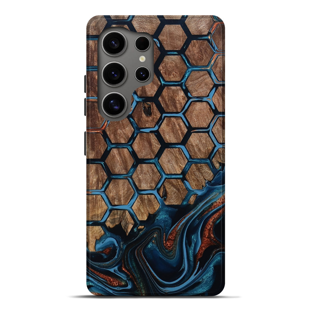 Our Live Edge cases are made from an amazing combination of stabilized wood burl and colored resin. Our stabilization process hardens the wood to protect against cracks and breaks. We do every step of the process at our shop in Northern Indiana. Perfectly fits the Galaxy S25 Ultra.