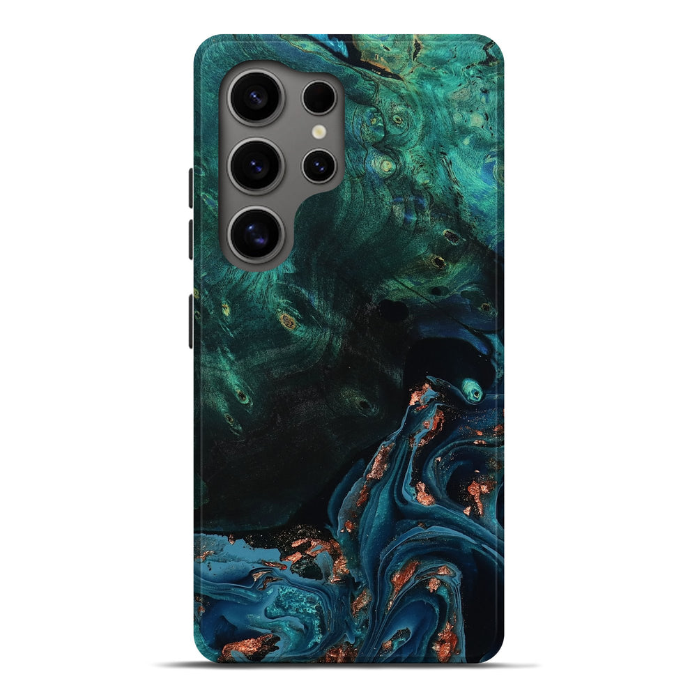 Our Live Edge cases are made from an amazing combination of stabilized wood burl and colored resin. Our stabilization process hardens the wood to protect against cracks and breaks. We do every step of the process at our shop in Northern Indiana. Perfectly fits the Galaxy S25 Ultra.