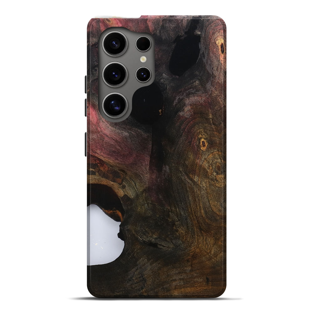 Our Live Edge cases are made from an amazing combination of stabilized wood burl and colored resin. Our stabilization process hardens the wood to protect against cracks and breaks. We do every step of the process at our shop in Northern Indiana. Perfectly fits the Galaxy S25 Ultra.