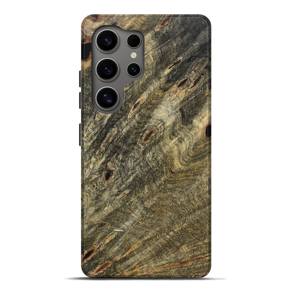 Our Live Edge cases are made from an amazing combination of stabilized wood burl and colored resin. Our stabilization process hardens the wood to protect against cracks and breaks. We do every step of the process at our shop in Northern Indiana. Perfectly fits the Galaxy S25 Ultra.