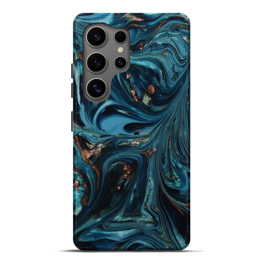 Talan has beautiful swirls of deep blue and teal, with hints of shimmering copper. The smooth resin creates a calming, flowing pattern that invites exploration.