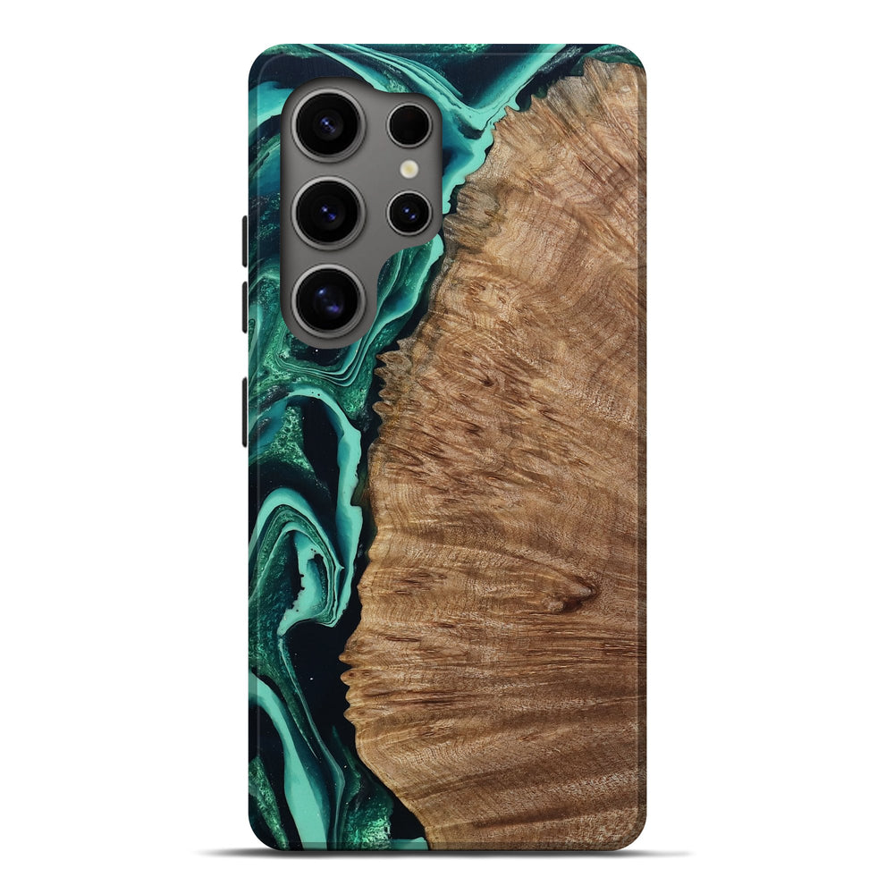 Our Live Edge cases are made from an amazing combination of stabilized wood burl and colored resin. Our stabilization process hardens the wood to protect against cracks and breaks. We do every step of the process at our shop in Northern Indiana. Perfectly fits the Galaxy S25 Ultra.