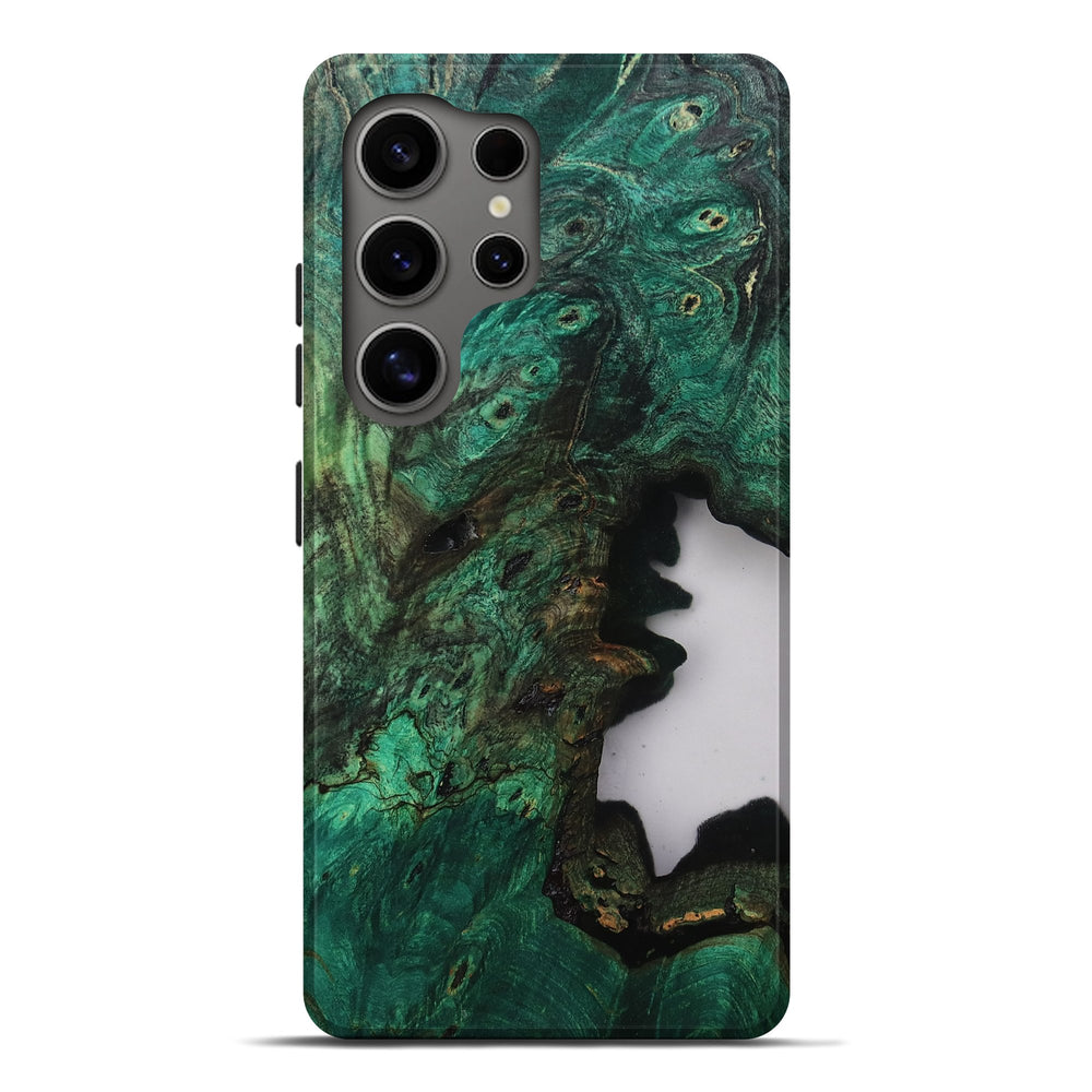 Our Live Edge cases are made from an amazing combination of stabilized wood burl and colored resin. Our stabilization process hardens the wood to protect against cracks and breaks. We do every step of the process at our shop in Northern Indiana. Perfectly fits the Galaxy S25 Ultra.