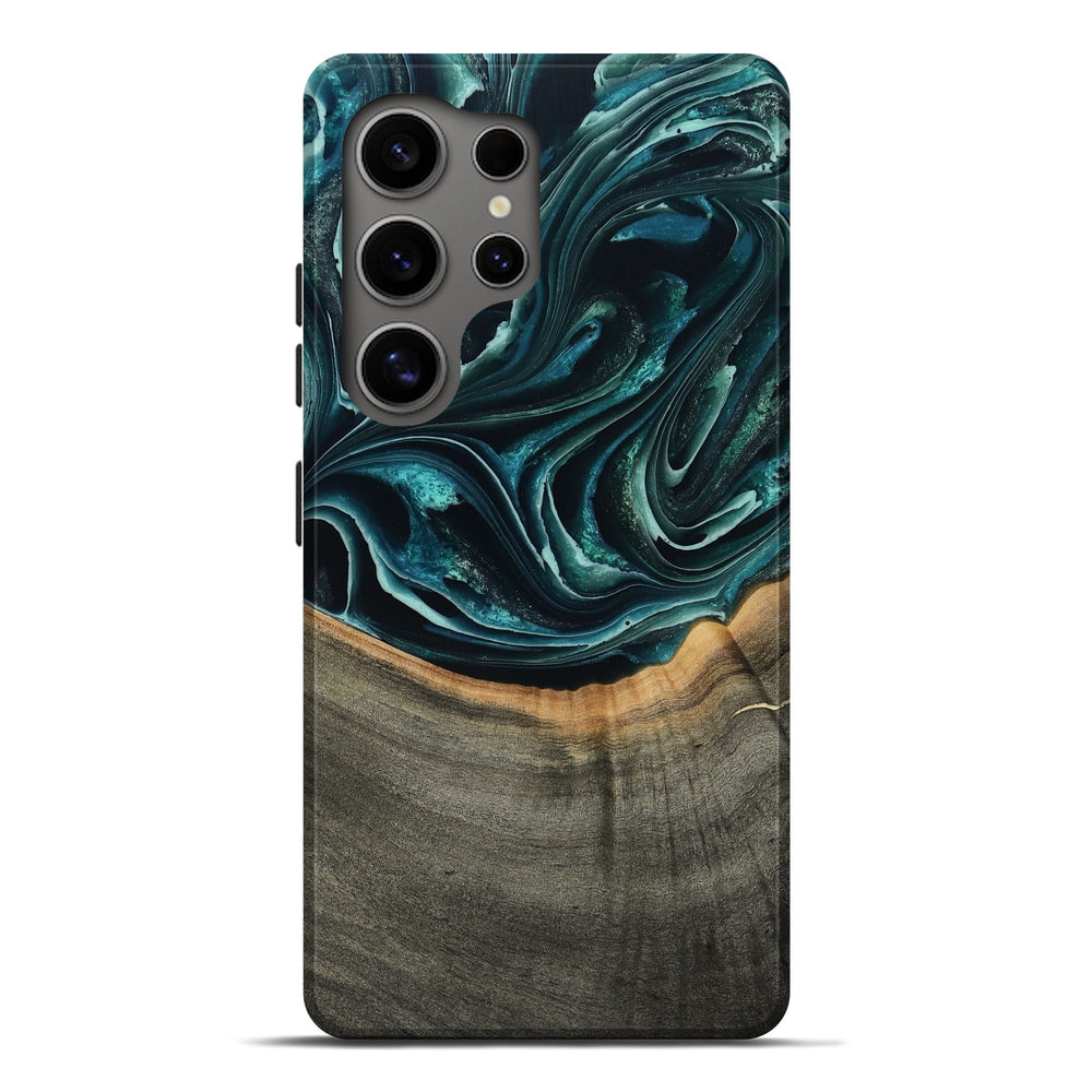 Our Live Edge cases are made from an amazing combination of stabilized wood burl and colored resin. Our stabilization process hardens the wood to protect against cracks and breaks. We do every step of the process at our shop in Northern Indiana. Perfectly fits the Galaxy S25 Ultra.