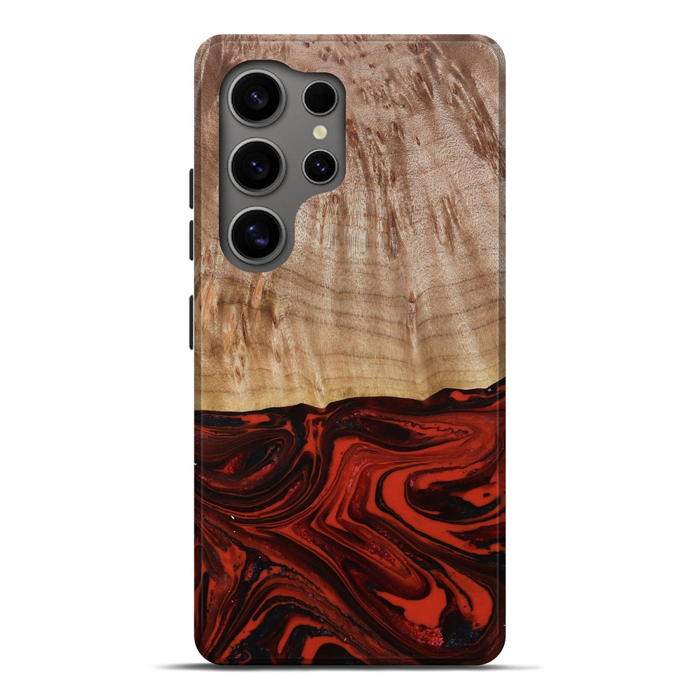 Our Live Edge cases are made from an amazing combination of stabilized wood burl and colored resin. Our stabilization process hardens the wood to protect against cracks and breaks. We do every step of the process at our shop in Northern Indiana. Perfectly fits the Galaxy S25 Ultra.