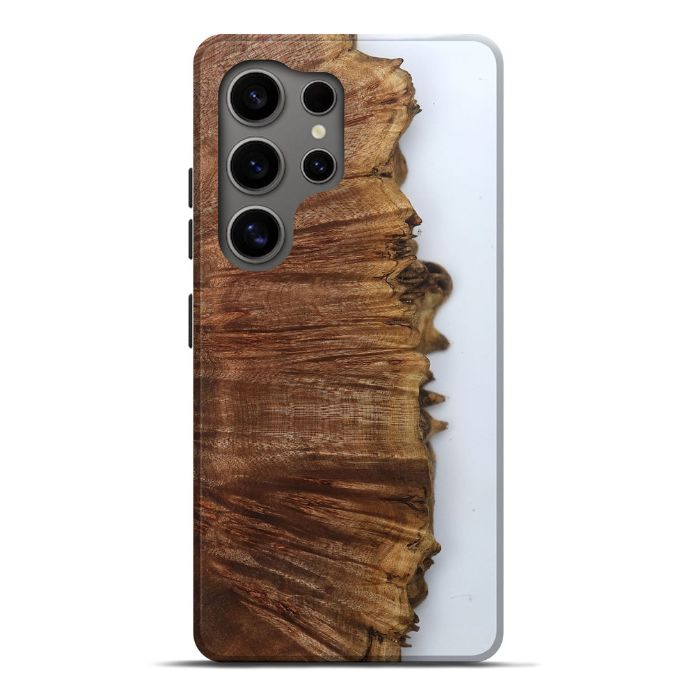 Our Live Edge cases are made from an amazing combination of stabilized wood burl and colored resin. Our stabilization process hardens the wood to protect against cracks and breaks. We do every step of the process at our shop in Northern Indiana. Perfectly fits the Galaxy S25 Ultra.