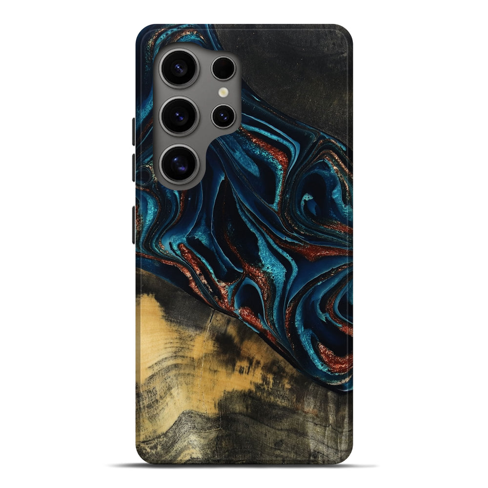 Our Live Edge cases are made from an amazing combination of stabilized wood burl and colored resin. Our stabilization process hardens the wood to protect against cracks and breaks. We do every step of the process at our shop in Northern Indiana. Perfectly fits the Galaxy S25 Ultra.