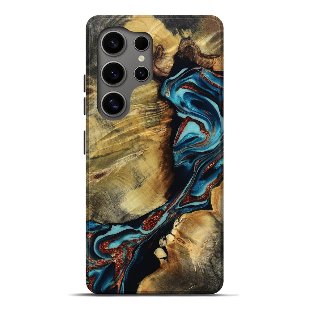 Our Live Edge cases are made from an amazing combination of stabilized wood burl and colored resin. Our stabilization process hardens the wood to protect against cracks and breaks. We do every step of the process at our shop in Northern Indiana. Perfectly fits the Galaxy S25 Ultra.