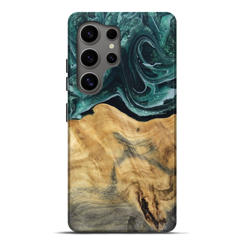 Our Live Edge cases are made from an amazing combination of stabilized wood burl and colored resin. Our stabilization process hardens the wood to protect against cracks and breaks. We do every step of the process at our shop in Northern Indiana. Perfectly fits the Galaxy S25 Ultra.