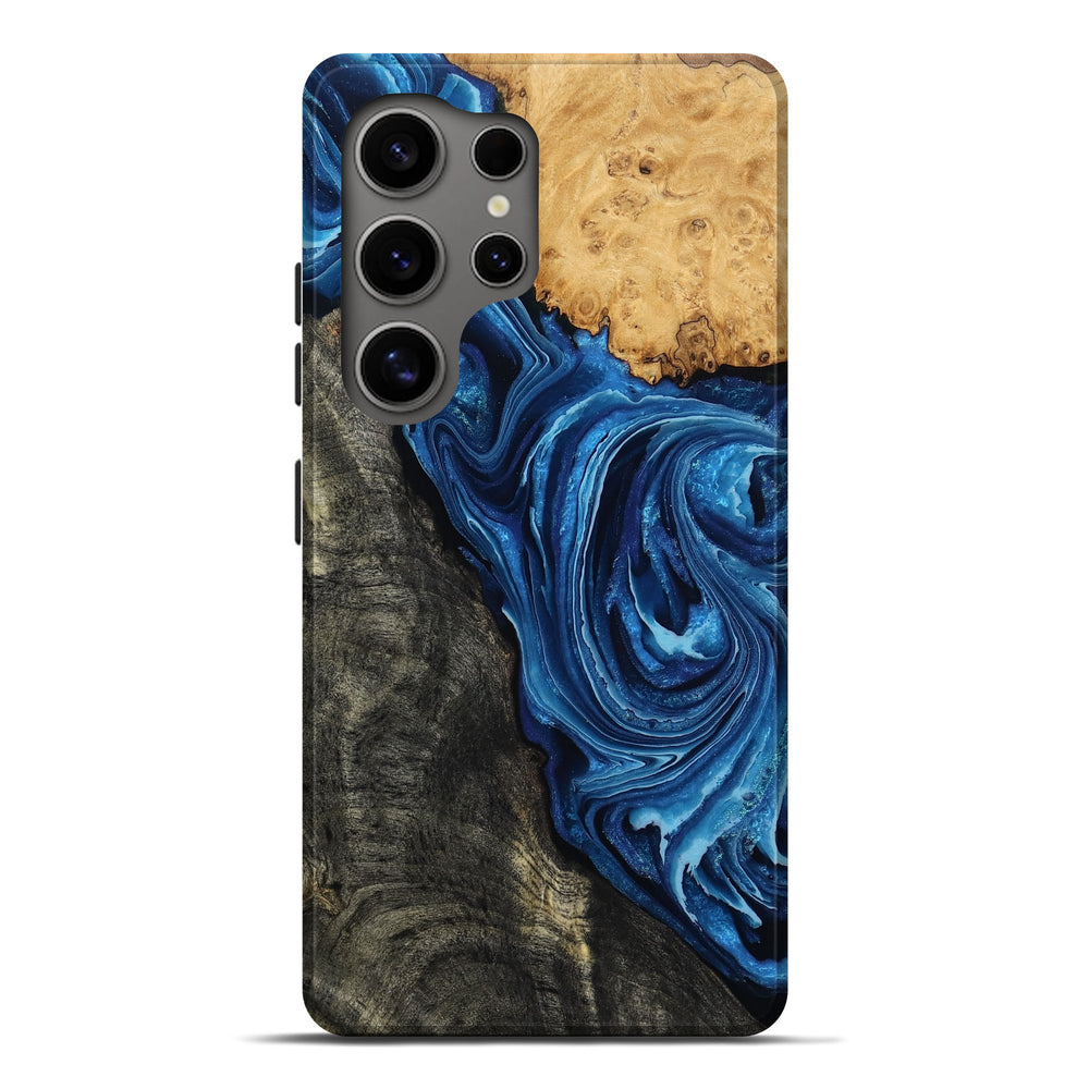 Our Live Edge cases are made from an amazing combination of stabilized wood burl and colored resin. Our stabilization process hardens the wood to protect against cracks and breaks. We do every step of the process at our shop in Northern Indiana. Perfectly fits the Galaxy S25 Ultra.