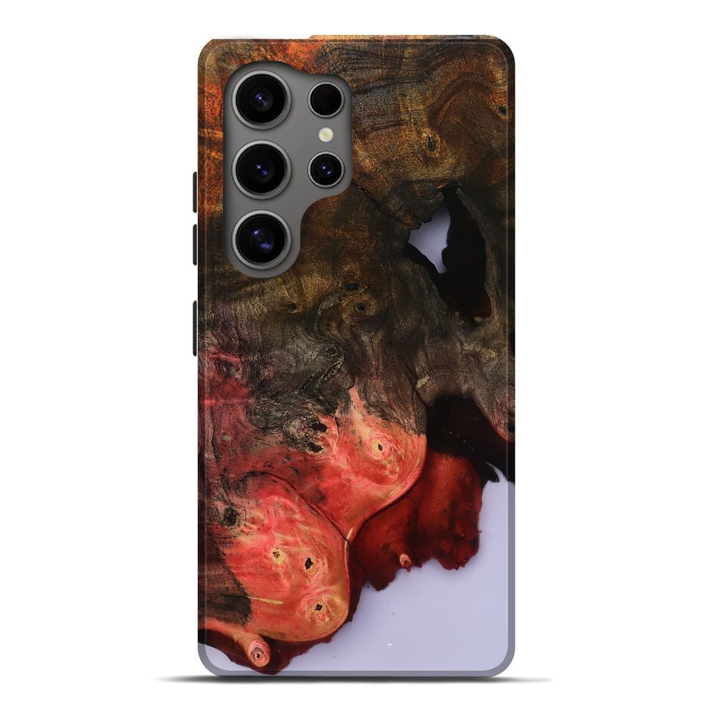 Our Live Edge cases are made from an amazing combination of stabilized wood burl and colored resin. Our stabilization process hardens the wood to protect against cracks and breaks. We do every step of the process at our shop in Northern Indiana. Perfectly fits the Galaxy S25 Ultra.