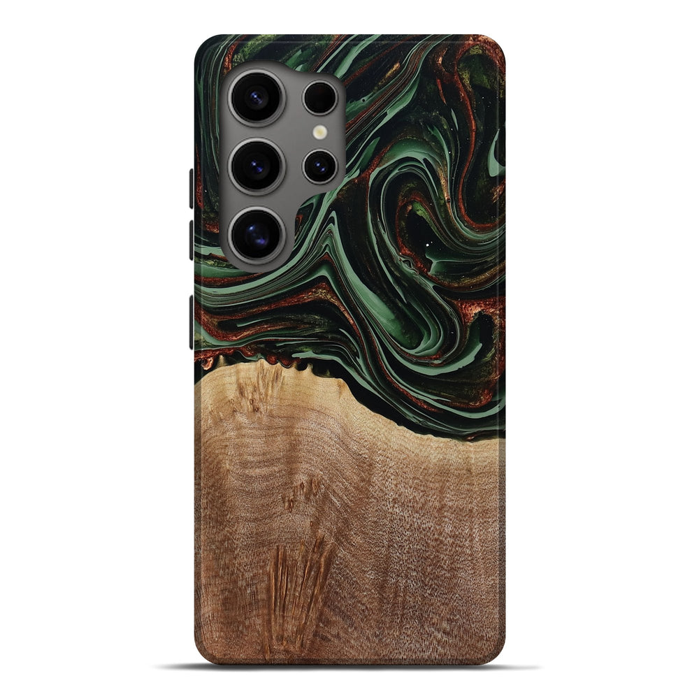 Our Live Edge cases are made from an amazing combination of stabilized wood burl and colored resin. Our stabilization process hardens the wood to protect against cracks and breaks. We do every step of the process at our shop in Northern Indiana. Perfectly fits the Galaxy S25 Ultra.