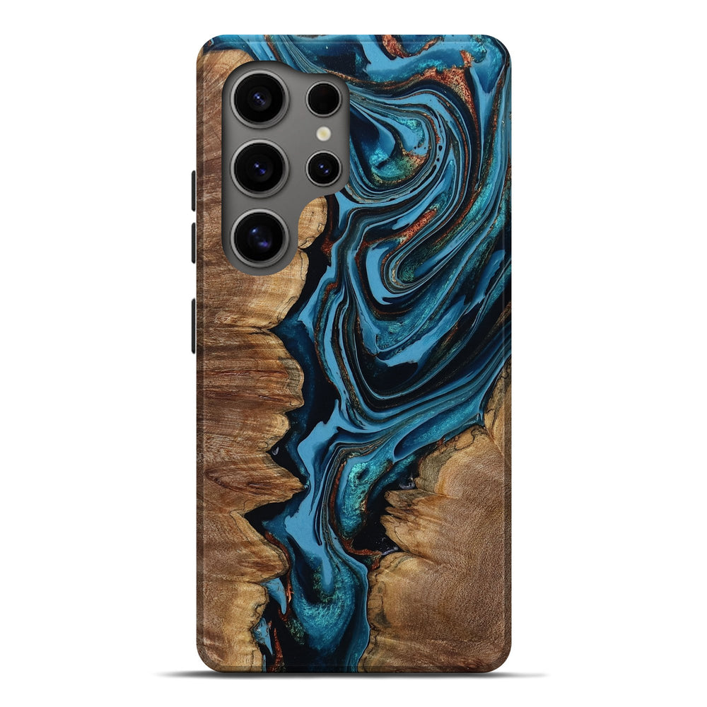 Our Live Edge cases are made from an amazing combination of stabilized wood burl and colored resin. Our stabilization process hardens the wood to protect against cracks and breaks. We do every step of the process at our shop in Northern Indiana. Perfectly fits the Galaxy S25 Ultra.
