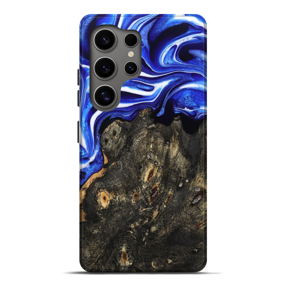 Our Live Edge cases are made from an amazing combination of stabilized wood burl and colored resin. Our stabilization process hardens the wood to protect against cracks and breaks. We do every step of the process at our shop in Northern Indiana. Perfectly fits the Galaxy S25 Ultra.