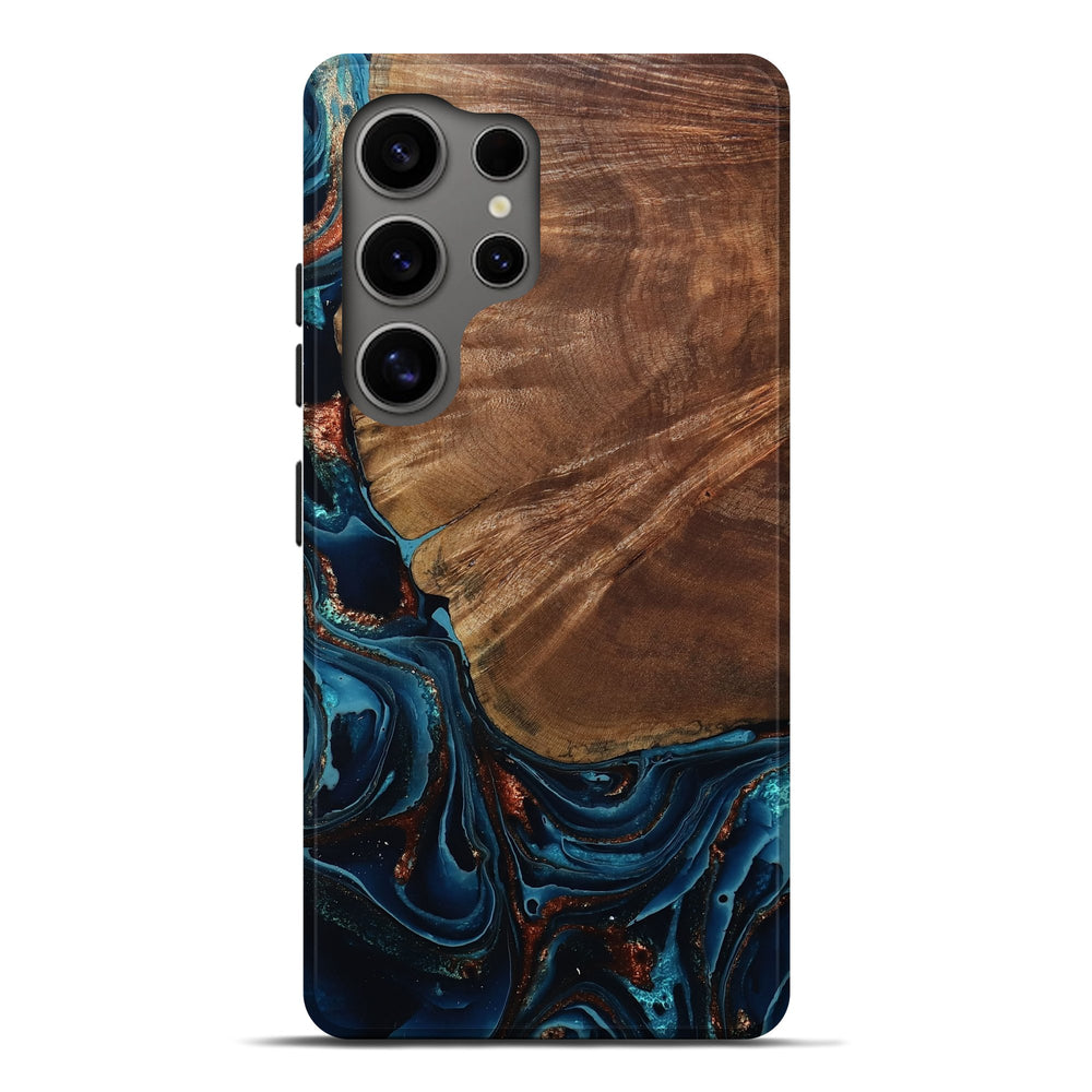 Our Live Edge cases are made from an amazing combination of stabilized wood burl and colored resin. Our stabilization process hardens the wood to protect against cracks and breaks. We do every step of the process at our shop in Northern Indiana. Perfectly fits the Galaxy S25 Ultra.