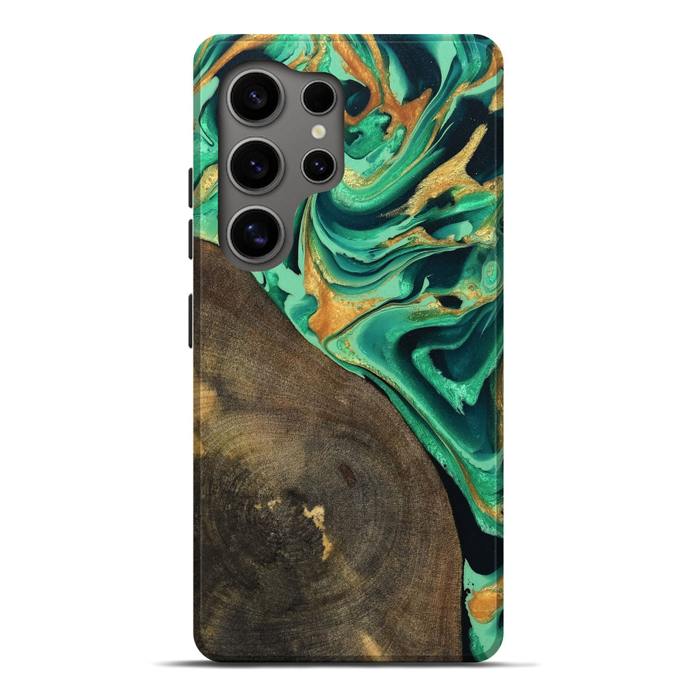 Our Live Edge cases are made from an amazing combination of stabilized wood burl and colored resin. Our stabilization process hardens the wood to protect against cracks and breaks. We do every step of the process at our shop in Northern Indiana. Perfectly fits the Galaxy S25 Ultra.