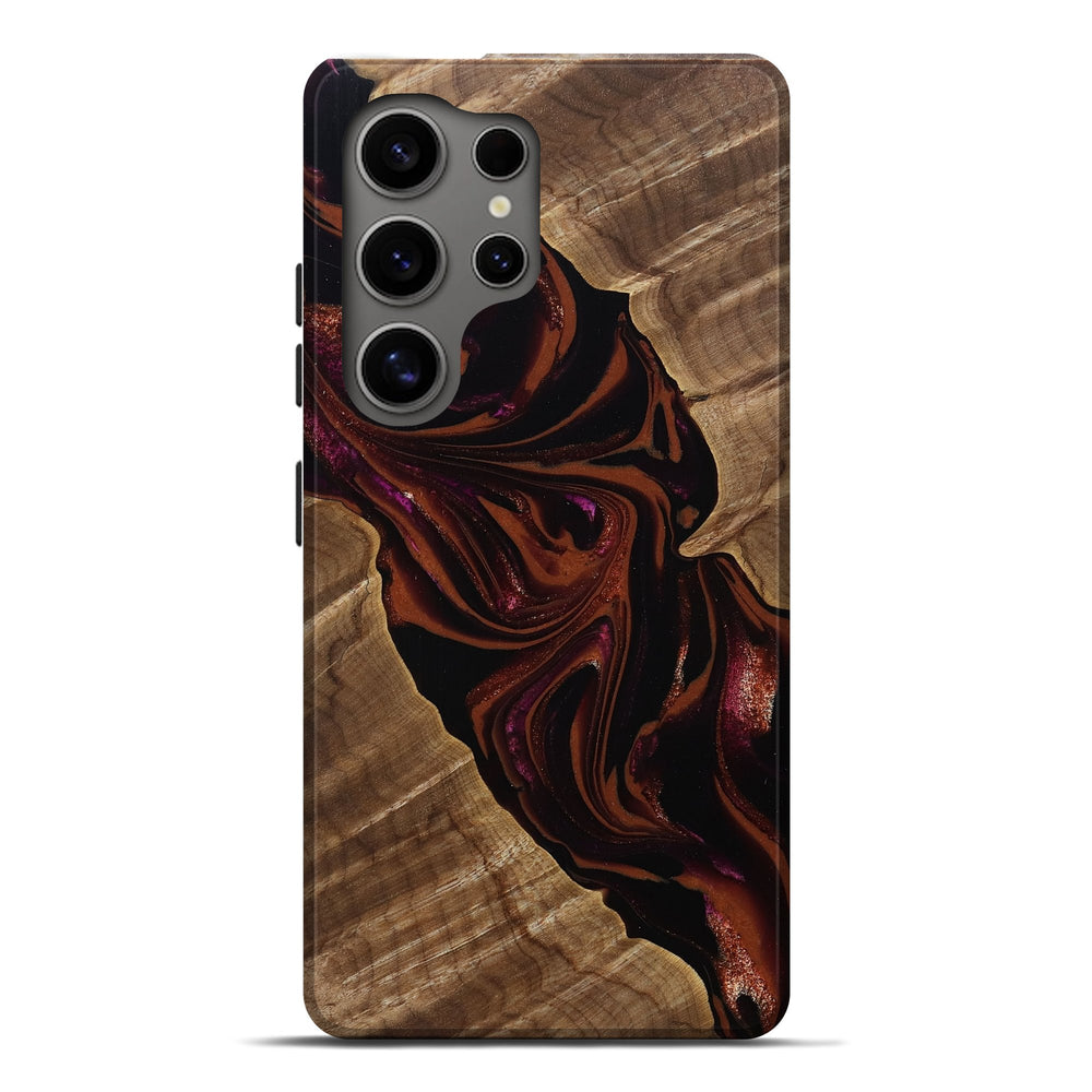 Our Live Edge cases are made from an amazing combination of stabilized wood burl and colored resin. Our stabilization process hardens the wood to protect against cracks and breaks. We do every step of the process at our shop in Northern Indiana. Perfectly fits the Galaxy S25 Ultra.