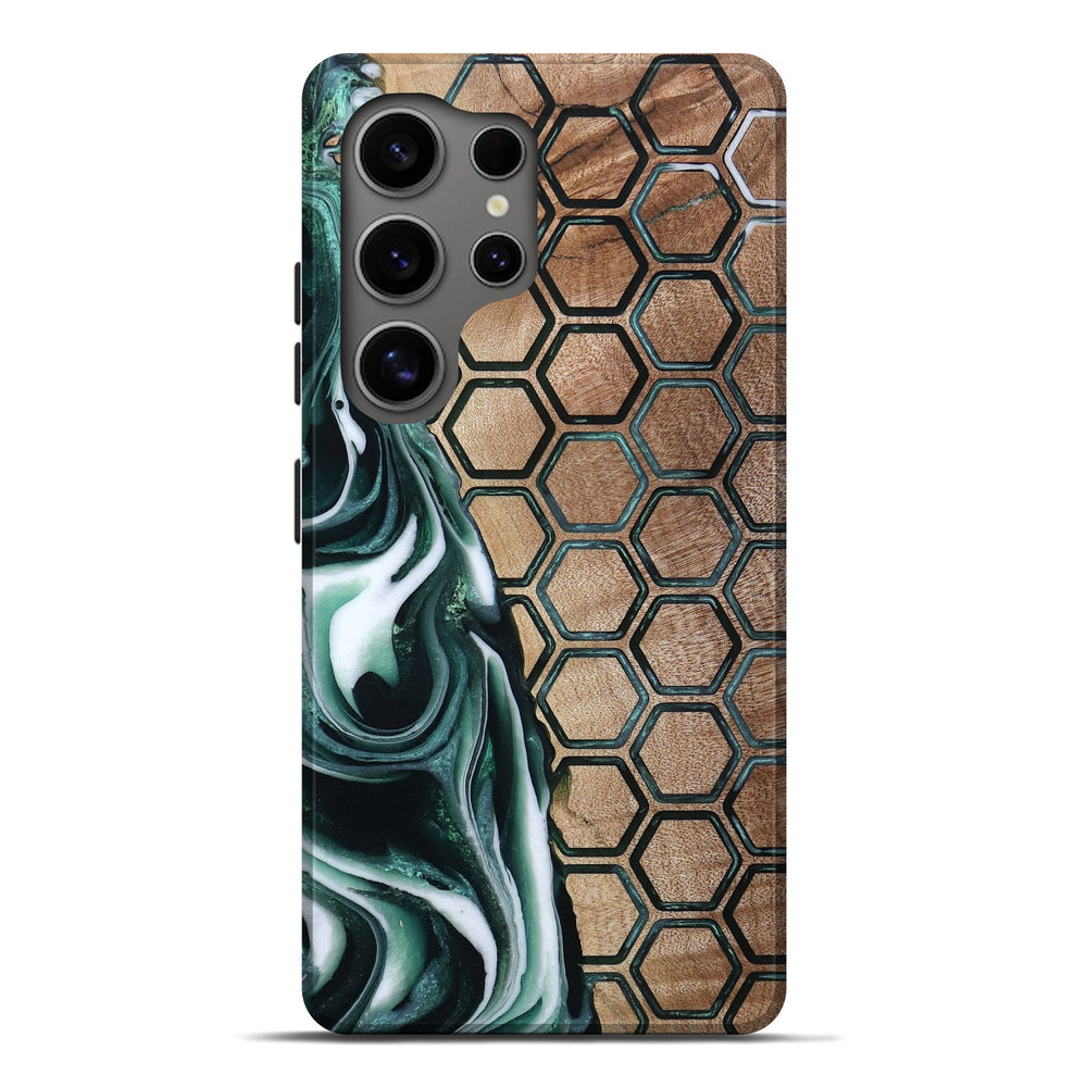 Our Live Edge cases are made from an amazing combination of stabilized wood burl and colored resin. Our stabilization process hardens the wood to protect against cracks and breaks. We do every step of the process at our shop in Northern Indiana. Perfectly fits the Galaxy S25 Ultra.