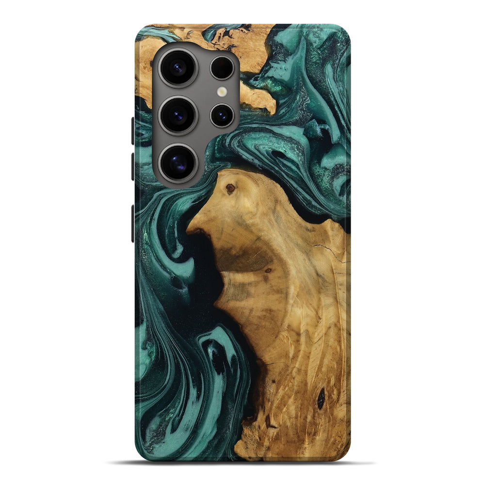 Our Live Edge cases are made from an amazing combination of stabilized wood burl and colored resin. Our stabilization process hardens the wood to protect against cracks and breaks. We do every step of the process at our shop in Northern Indiana. Perfectly fits the Galaxy S25 Ultra.