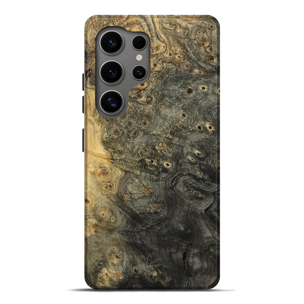 Our Live Edge cases are made from an amazing combination of stabilized wood burl and colored resin. Our stabilization process hardens the wood to protect against cracks and breaks. We do every step of the process at our shop in Northern Indiana. Perfectly fits the Galaxy S25 Ultra.