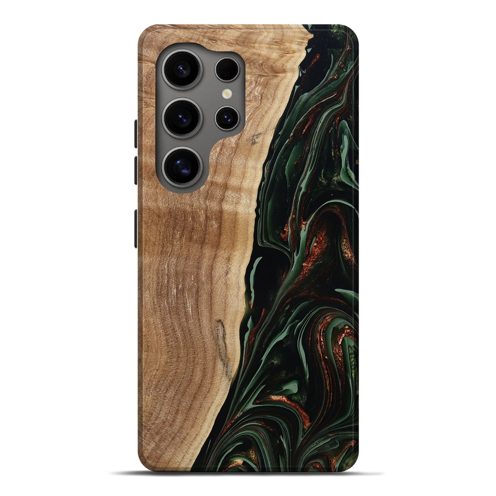 Our Live Edge cases are made from an amazing combination of stabilized wood burl and colored resin. Our stabilization process hardens the wood to protect against cracks and breaks. We do every step of the process at our shop in Northern Indiana. Perfectly fits the Galaxy S25 Ultra.