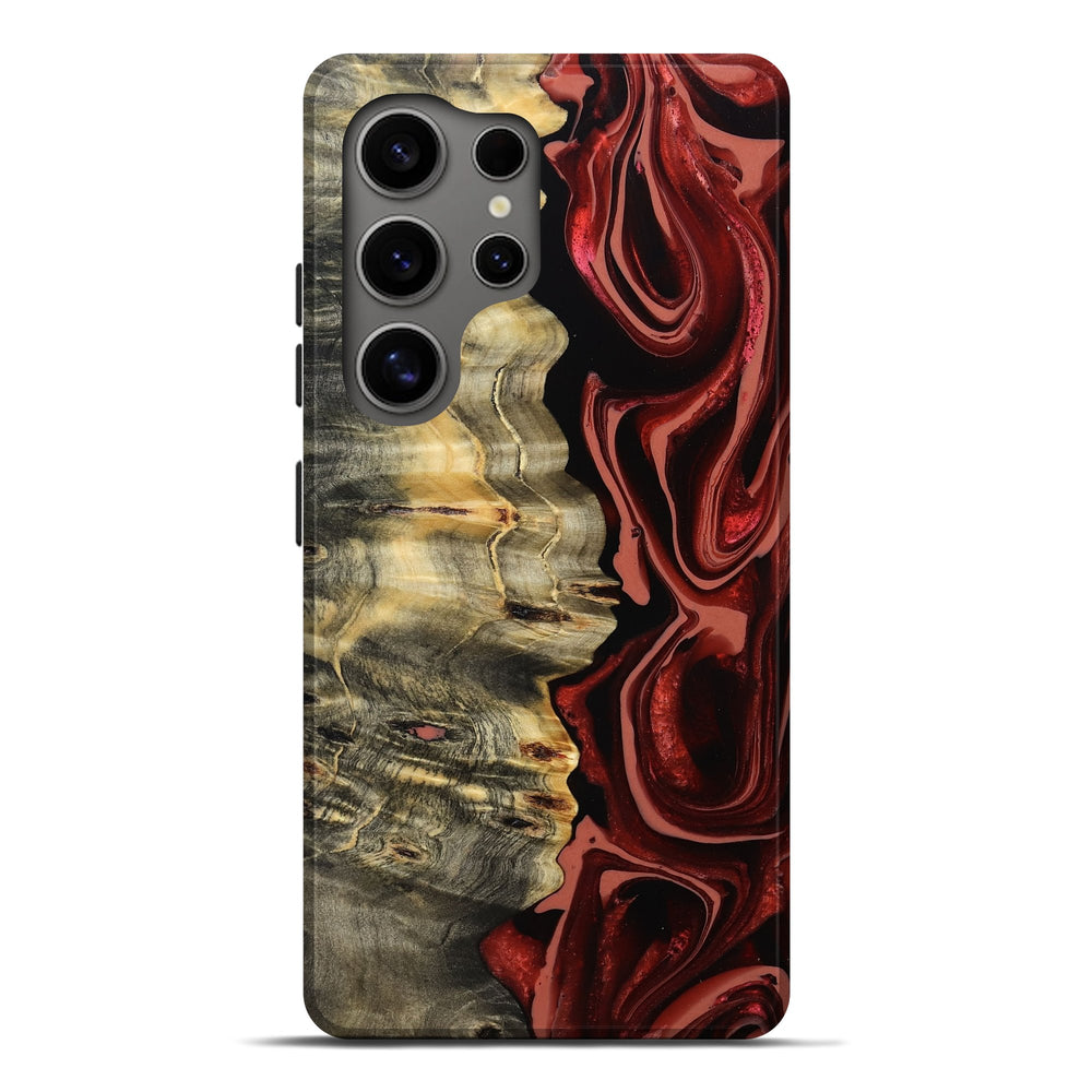 Our Live Edge cases are made from an amazing combination of stabilized wood burl and colored resin. Our stabilization process hardens the wood to protect against cracks and breaks. We do every step of the process at our shop in Northern Indiana. Perfectly fits the Galaxy S25 Ultra.