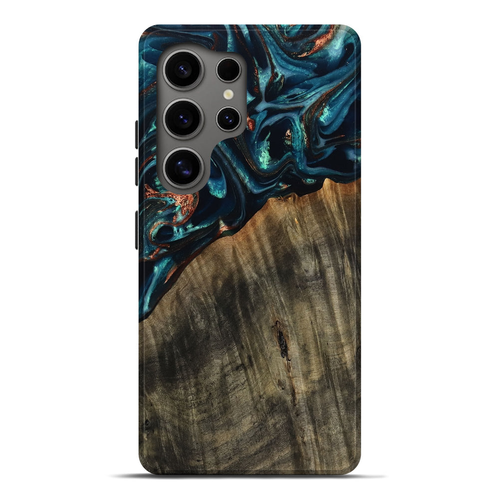 Our Live Edge cases are made from an amazing combination of stabilized wood burl and colored resin. Our stabilization process hardens the wood to protect against cracks and breaks. We do every step of the process at our shop in Northern Indiana. Perfectly fits the Galaxy S25 Ultra.