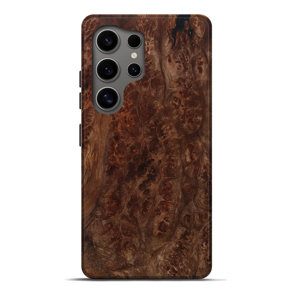 Our Live Edge cases are made from an amazing combination of stabilized wood burl and colored resin. Our stabilization process hardens the wood to protect against cracks and breaks. We do every step of the process at our shop in Northern Indiana. Perfectly fits the Galaxy S25 Ultra.