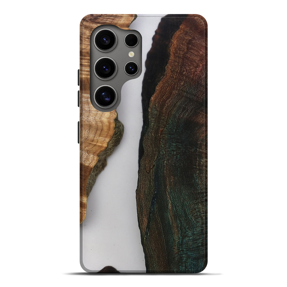 Our Live Edge cases are made from an amazing combination of stabilized wood burl and colored resin. Our stabilization process hardens the wood to protect against cracks and breaks. We do every step of the process at our shop in Northern Indiana. Perfectly fits the Galaxy S25 Ultra.