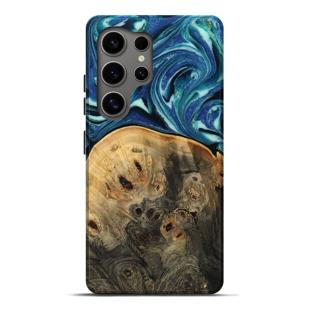 Our Live Edge cases are made from an amazing combination of stabilized wood burl and colored resin. Our stabilization process hardens the wood to protect against cracks and breaks. We do every step of the process at our shop in Northern Indiana. Perfectly fits the Galaxy S25 Ultra.
