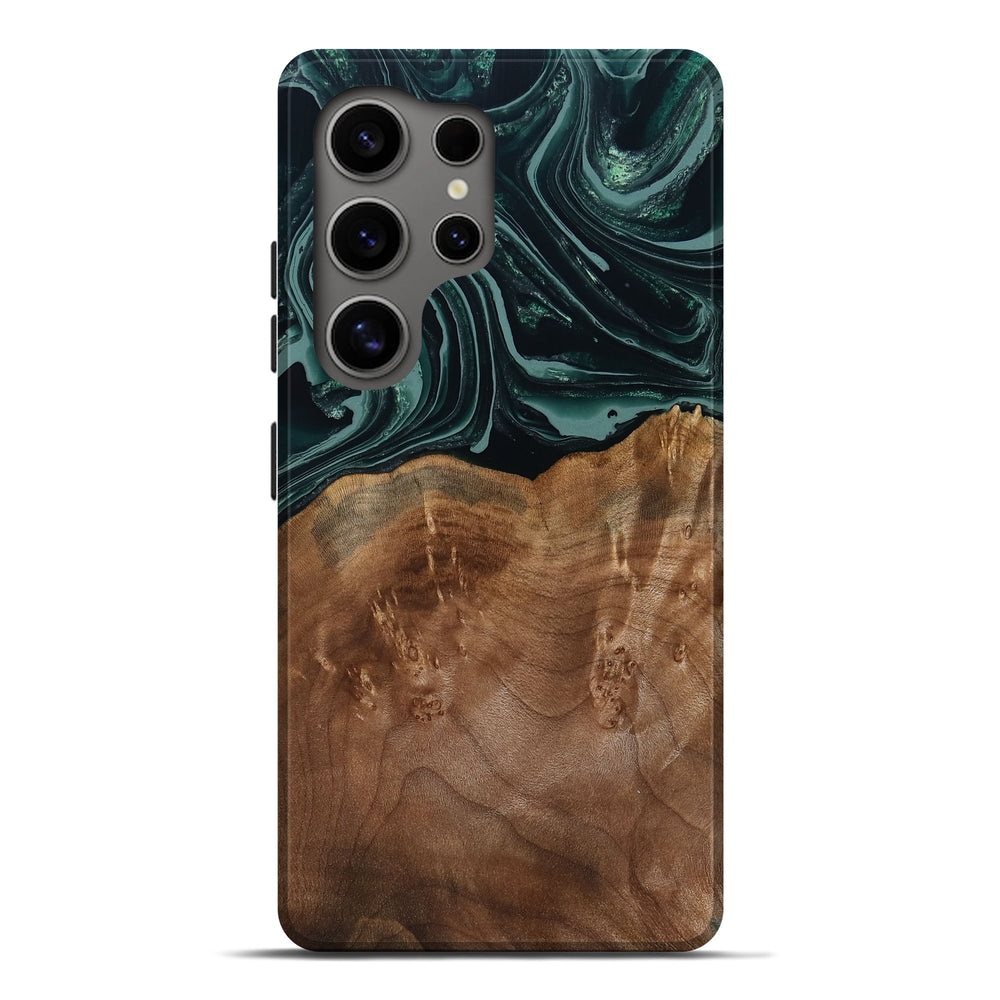 Our Live Edge cases are made from an amazing combination of stabilized wood burl and colored resin. Our stabilization process hardens the wood to protect against cracks and breaks. We do every step of the process at our shop in Northern Indiana. Perfectly fits the Galaxy S25 Ultra.