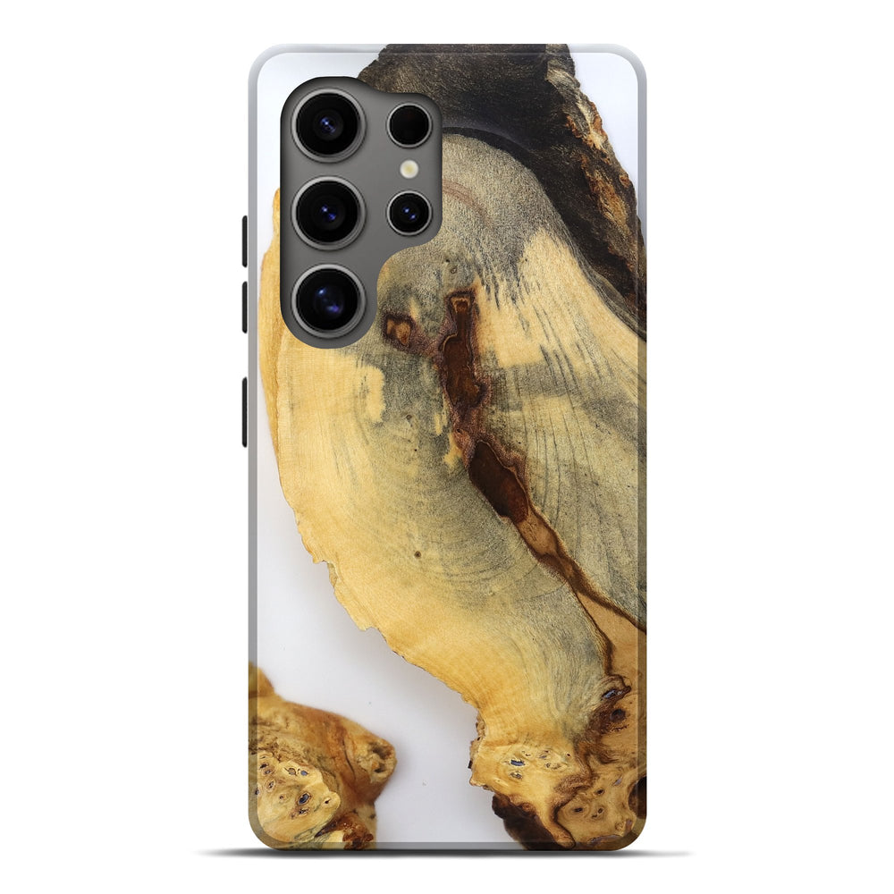 Our Live Edge cases are made from an amazing combination of stabilized wood burl and colored resin. Our stabilization process hardens the wood to protect against cracks and breaks. We do every step of the process at our shop in Northern Indiana. Perfectly fits the Galaxy S25 Ultra.