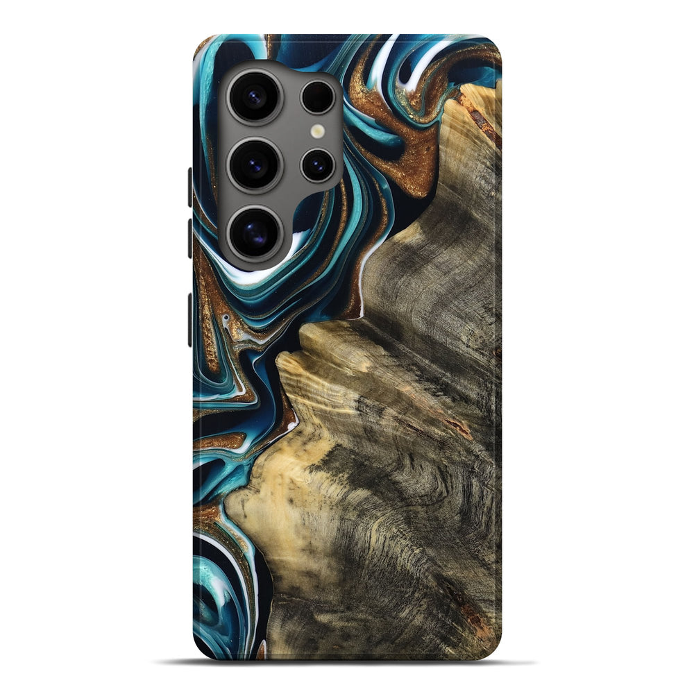 Our Live Edge cases are made from an amazing combination of stabilized wood burl and colored resin. Our stabilization process hardens the wood to protect against cracks and breaks. We do every step of the process at our shop in Northern Indiana. Perfectly fits the Galaxy S25 Ultra.