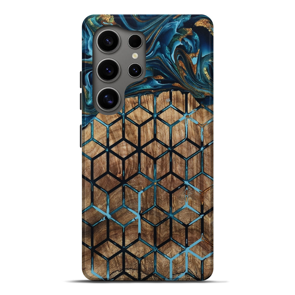 Our Live Edge cases are made from an amazing combination of stabilized wood burl and colored resin. Our stabilization process hardens the wood to protect against cracks and breaks. We do every step of the process at our shop in Northern Indiana. Perfectly fits the Galaxy S25 Ultra.