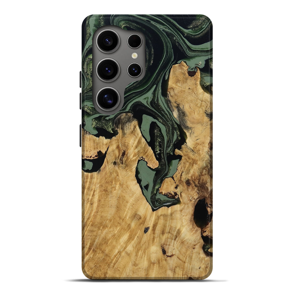 Our Live Edge cases are made from an amazing combination of stabilized wood burl and colored resin. Our stabilization process hardens the wood to protect against cracks and breaks. We do every step of the process at our shop in Northern Indiana. Perfectly fits the Galaxy S25 Ultra.