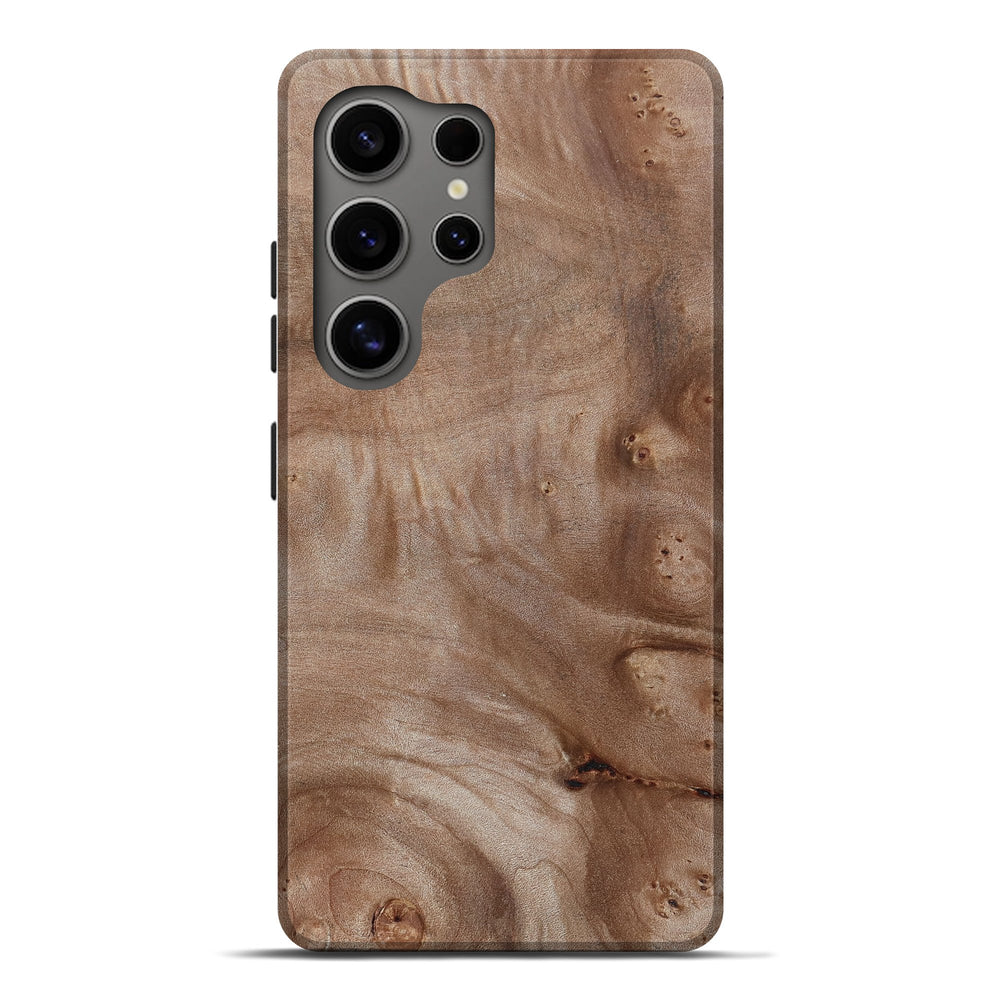 Our Live Edge cases are made from an amazing combination of stabilized wood burl and colored resin. Our stabilization process hardens the wood to protect against cracks and breaks. We do every step of the process at our shop in Northern Indiana. Perfectly fits the Galaxy S25 Ultra.