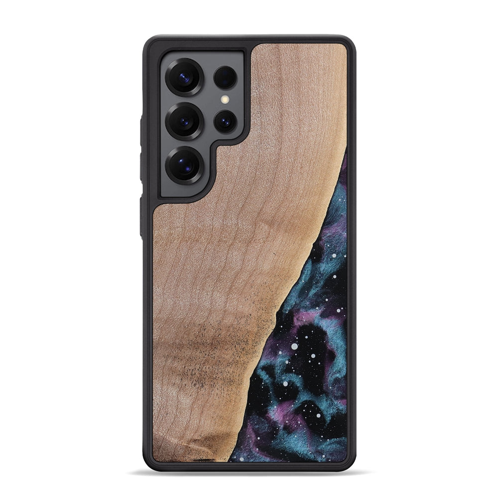 Aspyn has a smooth, warm surface that showcases the natural grain of the Maple wood. The light tones of the wood beautifully contrast with the dark, cosmic background, creating a calming effect.