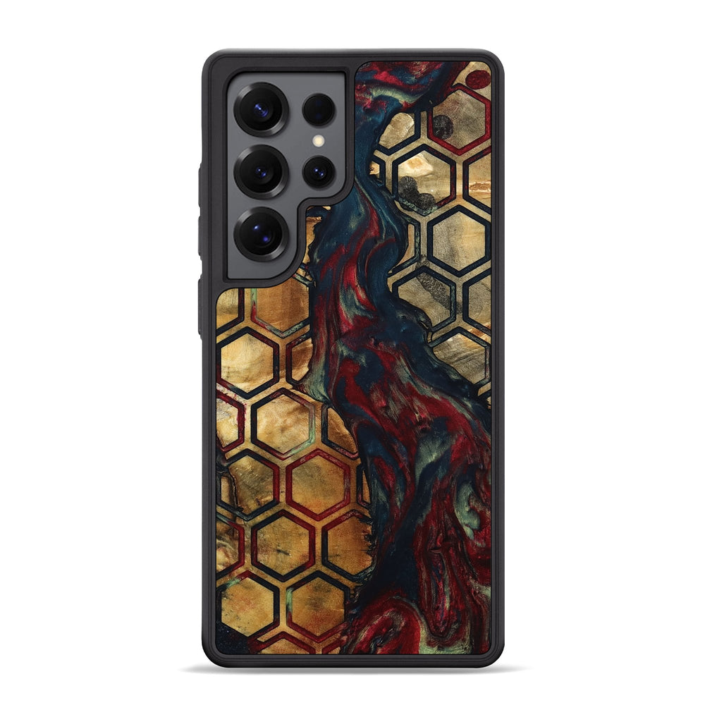 Darron features a mix of rich reds and deep blues flowing through gold and black hexagonal patterns. The harmonious blend of colors creates a striking visual effect that draws the eye.
