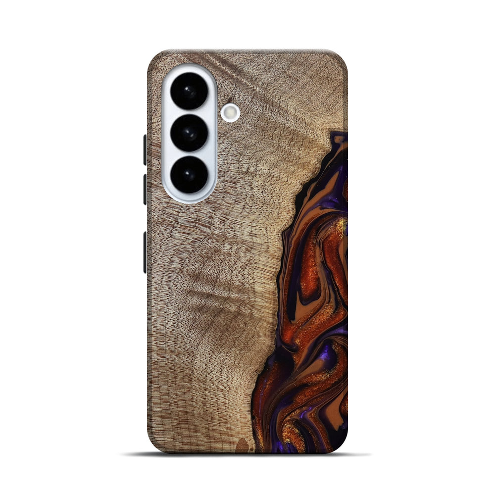 Our Live Edge cases are made from an amazing combination of stabilized wood burl and colored resin. Our stabilization process hardens the wood to protect against cracks and breaks. We do every step of the process at our shop in Northern Indiana. Perfectly fits the Galaxy S26.