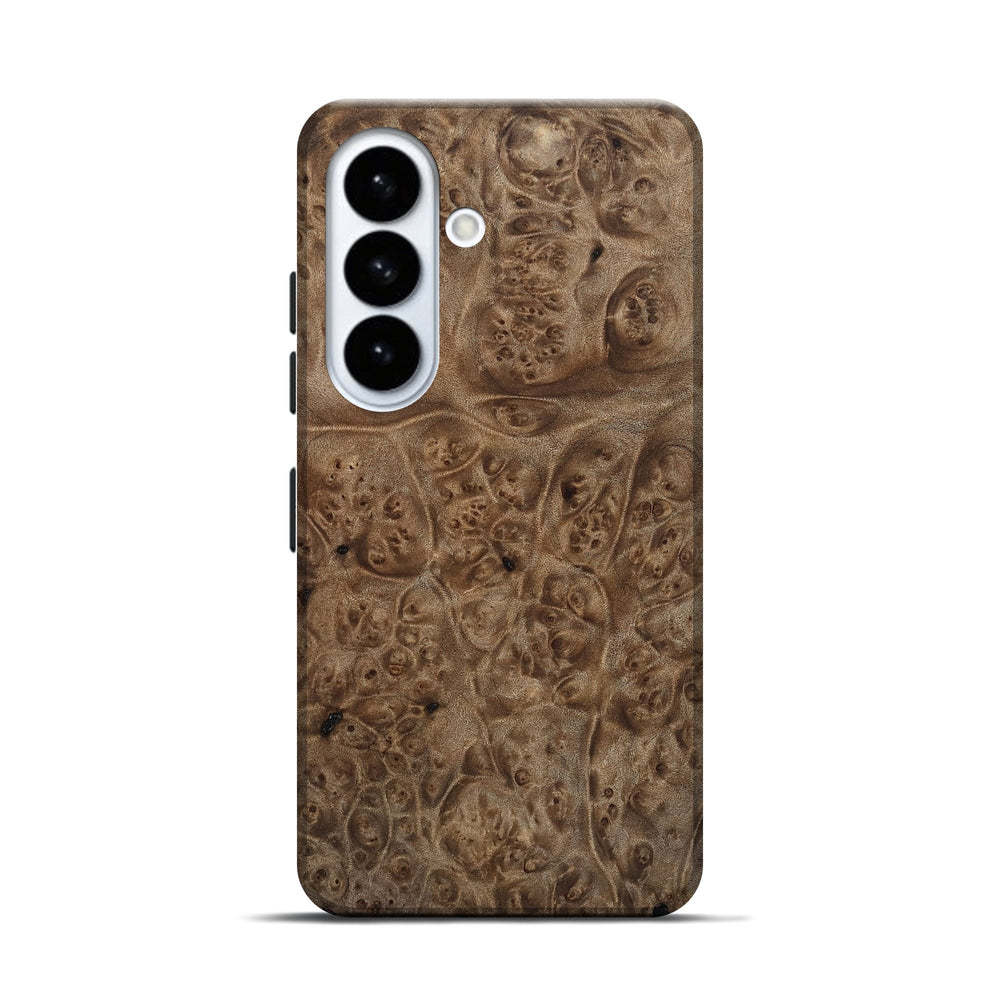 Our Live Edge cases are made from an amazing combination of stabilized wood burl and colored resin. Our stabilization process hardens the wood to protect against cracks and breaks. We do every step of the process at our shop in Northern Indiana. Perfectly fits the Galaxy S26.
