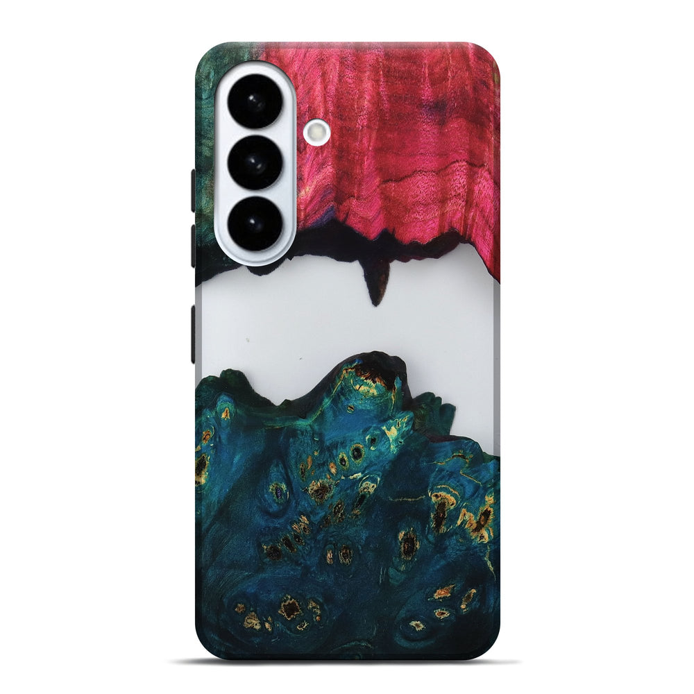 Our Live Edge cases are made from an amazing combination of stabilized wood burl and colored resin. Our stabilization process hardens the wood to protect against cracks and breaks. We do every step of the process at our shop in Northern Indiana. Perfectly fits the Galaxy S26 Plus.