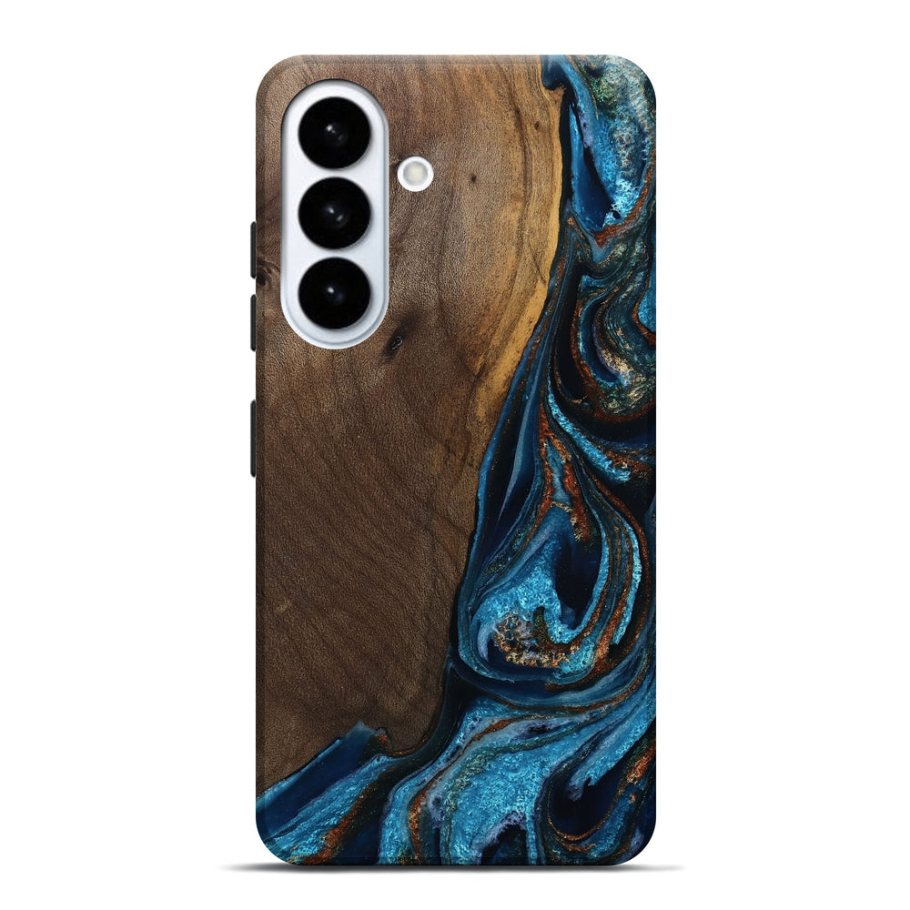 Our Live Edge cases are made from an amazing combination of stabilized wood burl and colored resin. Our stabilization process hardens the wood to protect against cracks and breaks. We do every step of the process at our shop in Northern Indiana. Perfectly fits the Galaxy S26 Plus.