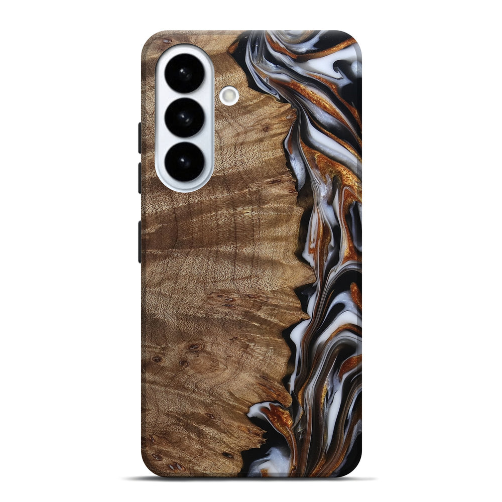 Our Live Edge cases are made from an amazing combination of stabilized wood burl and colored resin. Our stabilization process hardens the wood to protect against cracks and breaks. We do every step of the process at our shop in Northern Indiana. Perfectly fits the Galaxy S26 Plus.