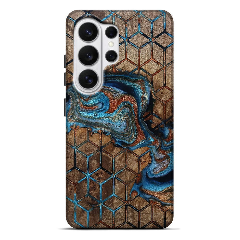 Our Live Edge cases are made from an amazing combination of stabilized wood burl and colored resin. Our stabilization process hardens the wood to protect against cracks and breaks. We do every step of the process at our shop in Northern Indiana. Perfectly fits the Galaxy S26 Ultra.