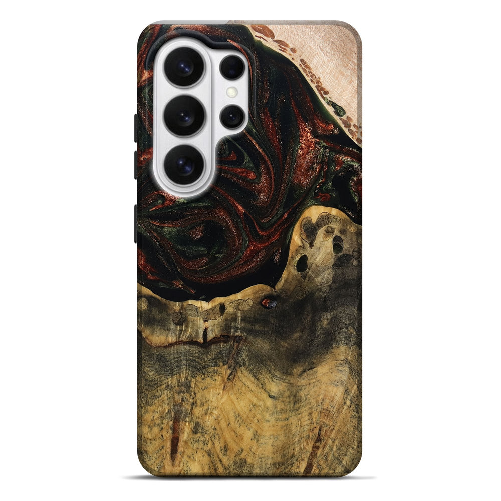 Our Live Edge cases are made from an amazing combination of stabilized wood burl and colored resin. Our stabilization process hardens the wood to protect against cracks and breaks. We do every step of the process at our shop in Northern Indiana. Perfectly fits the Galaxy S26 Ultra.